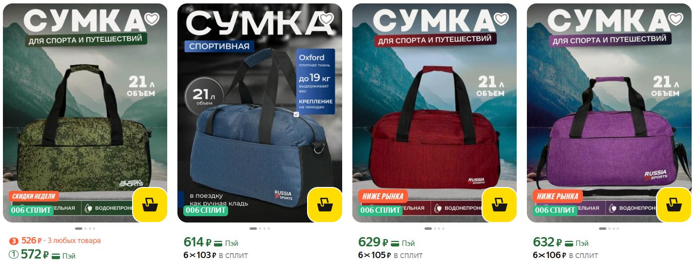 Попались спортивные сумки от 572₽. Размер 60х45х25 - влезет и форма, и кроссовки, и полотенце. Ткань не промокает, швы крепкие. Ручки есть и ремень через плечо в комплекте.