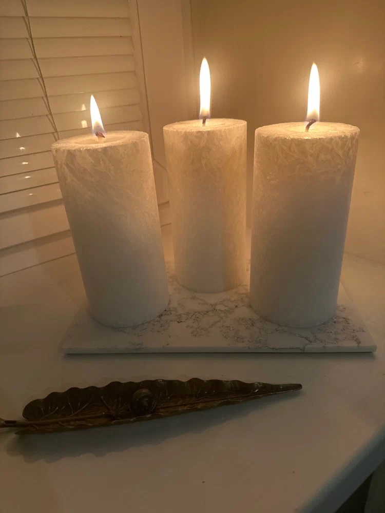 Они без ароматизаторов, поэтому не вызывают аллергии. Изготовлены из натурального стеарина, который горит ровно и чисто. Выглядят очень эстетично.