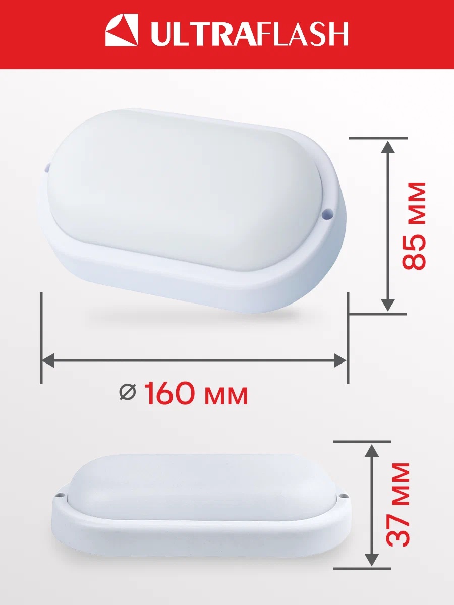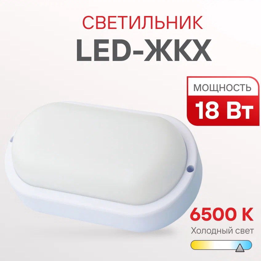 Мощность 18 Вт, световой поток 1450 лм, цветовая температура 6500К, размер 195х95х37 мм.