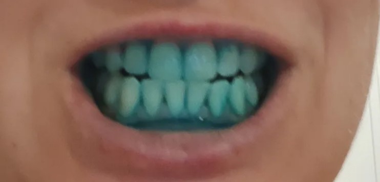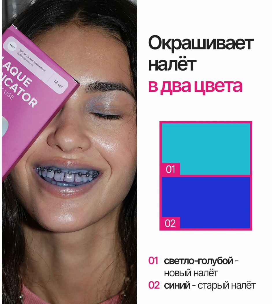 Кладёшь одну таблетку в рот, разжёвываешь, и она, как волшебный маркер, окрашивает весь зубной налёт в яркий синий или розовый цвет. Там, где ты обычно плохо проходишься щёткой, сразу появляются пятна. Выглядит, конечно, жутковато, как будто съела синюю конфету 😅 Но это и есть цель!