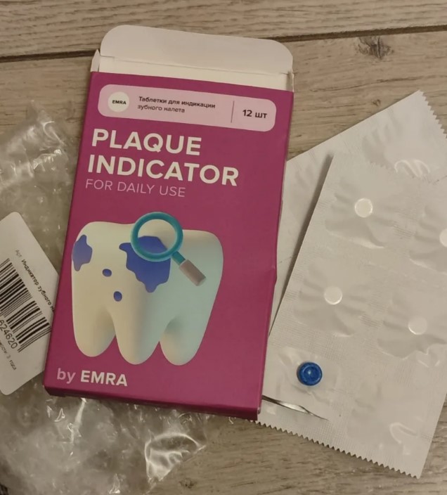 Нашла одну крутую штуку! 😊 Это такие таблетки-индикаторы от EMRA, чтобы проверить насколько чистые зубы.