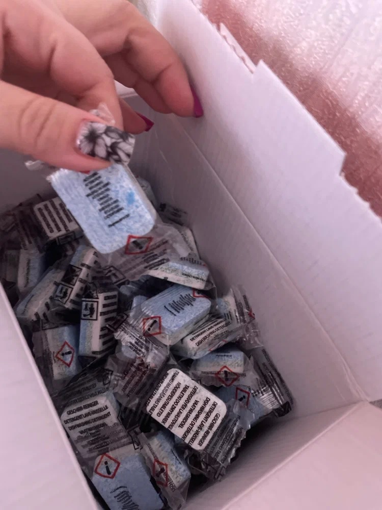 Таблетки для посудомоечных машин с ароматом лимона, в упаковке 150 шт, хватит надолго.