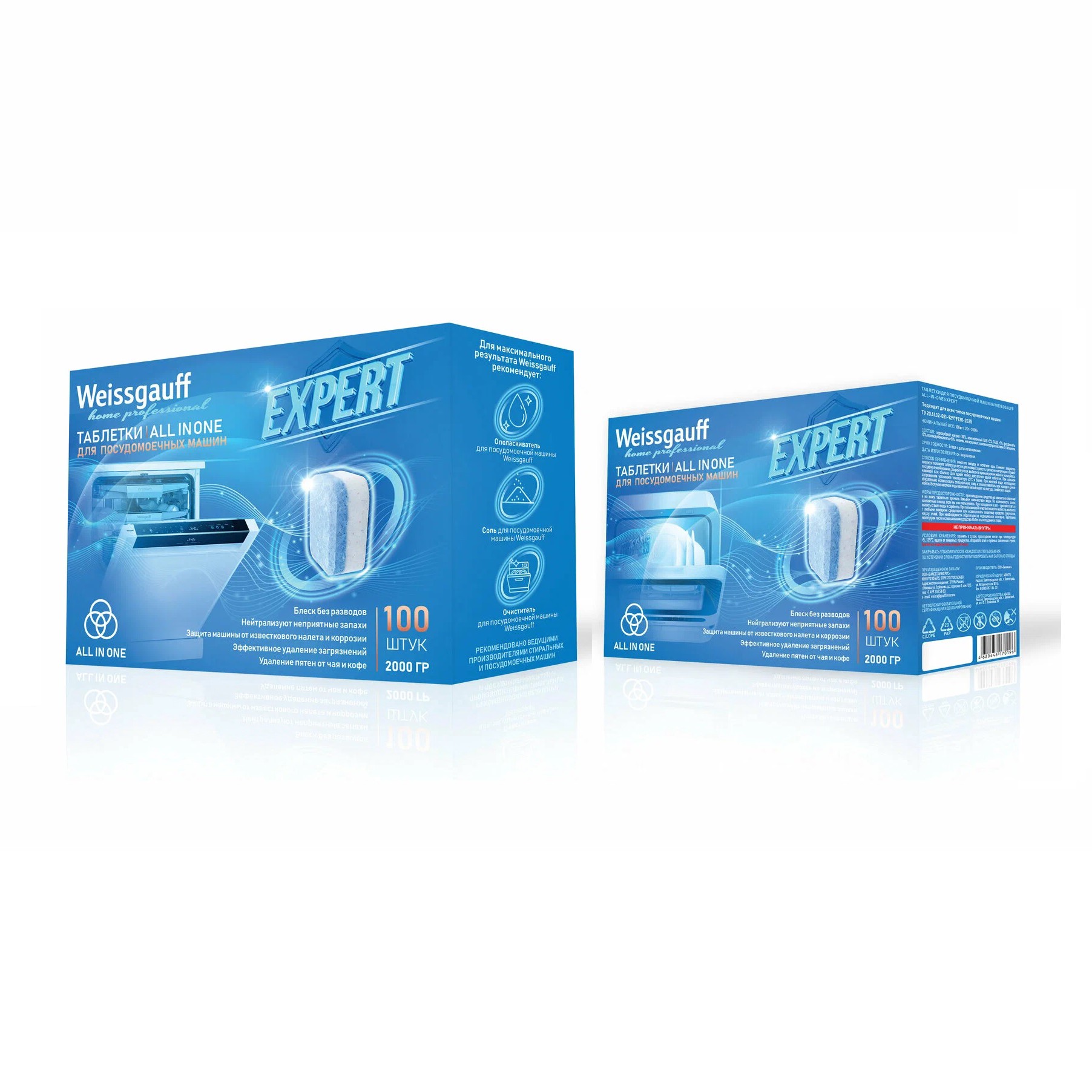 Таблетки для посудомоечной машины Weissgauff All-in-One Expert Double Pack, 200 шт с баллами за отзыв