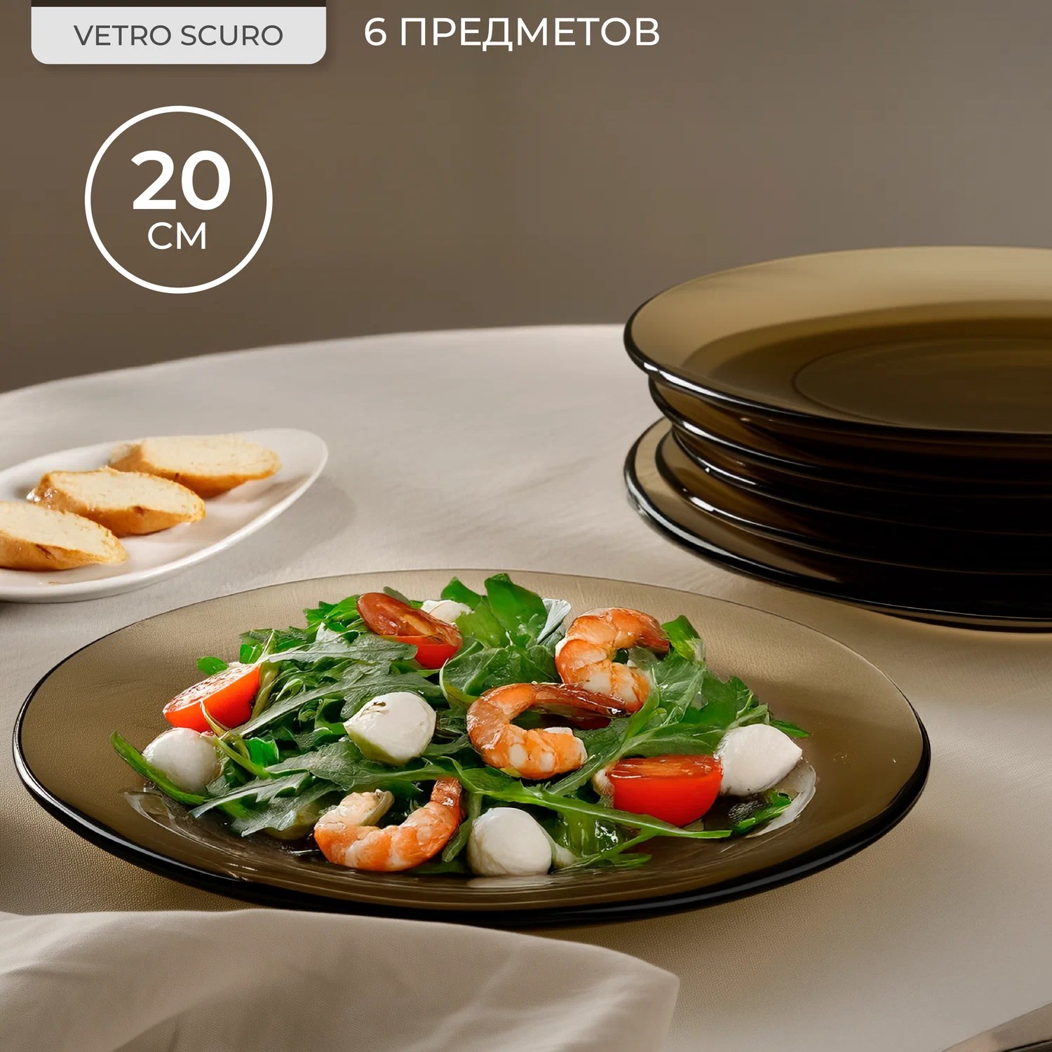 Тарелки прочные, стильные, устойчивые к сколам, изготовлены из силикатное стекло с добавлением кальция. Легко отмываются, подходят для посудомоечной машины и использования в СВЧ.