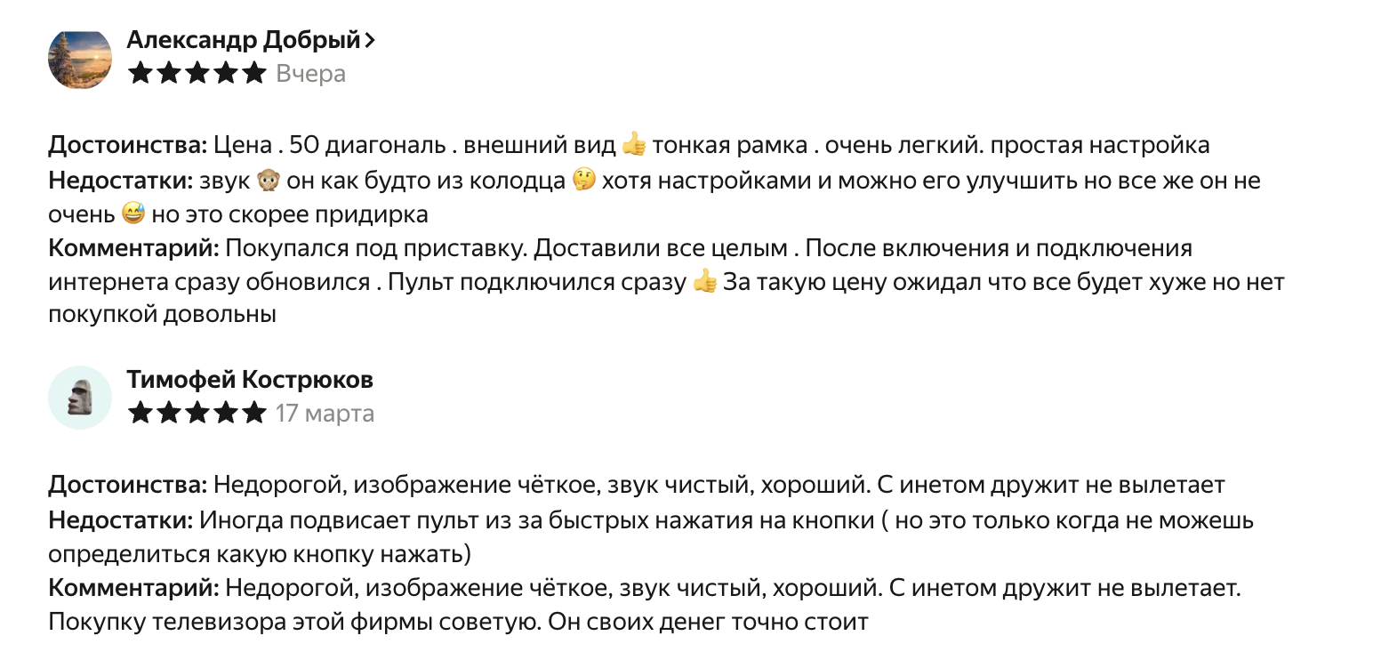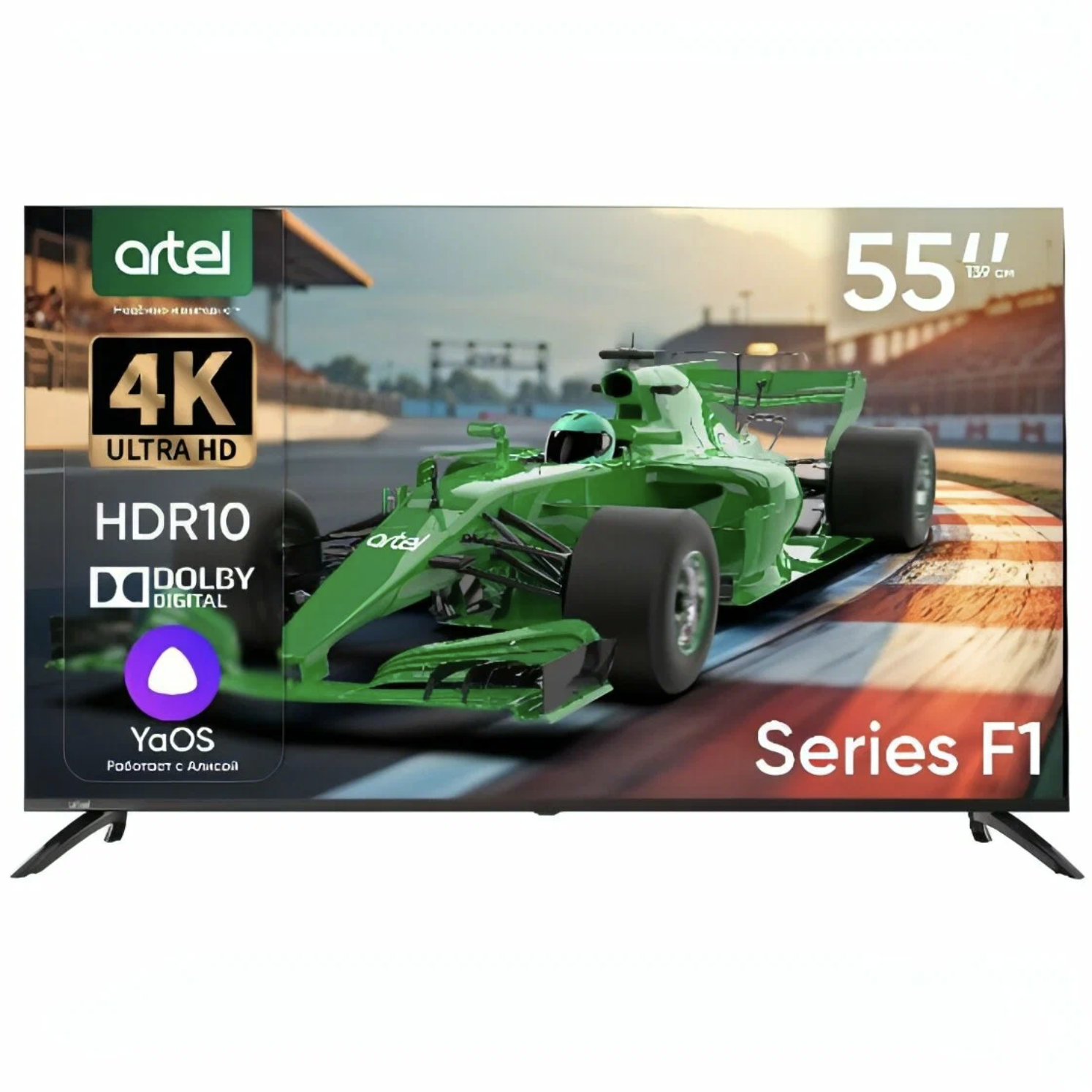 Безрамочный дизайн, 55 дюймов, 4К, YaOS (это Яндекс, Кинопоиск, Плюс, Алиса внутри). Подсветка Direct LED, углы обзора норм, 60 Гц для кино и приставок за глаза. Звук 20 Вт с Dolby Digital, но много не рассчитывайте, в отзывах есть недовольные.
