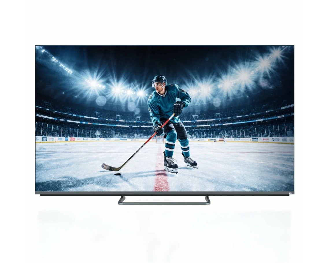 Стильная модель с серебристым корпусом и центральной ножкой. MiniLED-подсветка, разрешение 4K UHD (3840×2160), матрица VA, яркость 450 нит, контрастность 6000:1 (динамическая 1 000 000:1), углы обзора 178°. Поддержка HDR10 и Dolby Vision. Частота обновления 60 Гц, отклик 6.5 мс. Звук: Dolby Atmos, Dolby Digital, есть сабвуфер. Smart TV на Android TV, Wi-Fi 5, Bluetooth, 4×HDMI 2.1, 2×USB, Ethernet, оптический выход. Размеры с подставкой: 1446×865×267 мм, без подставки - 1446×836×74 мм, вес 16.4/16 кг.