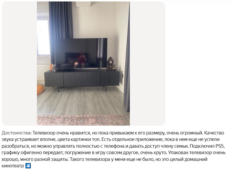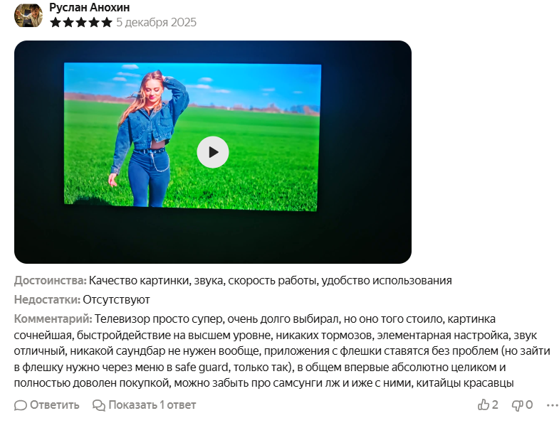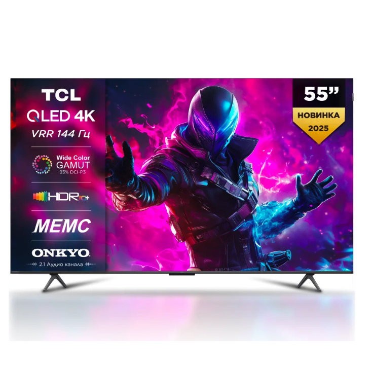 С диагональю 55 дюймов на QLED-матрице HVA с разрешением 4K UHD и частотой обновления 120 Гц, Google TV, HDMI, мощность звука 35 Вт и поддерживает технологии Dolby Atmos. Телевизор принимает сигналы цифрового телевидения стандартов DVB-T2, DVB-C, DVB-S2.