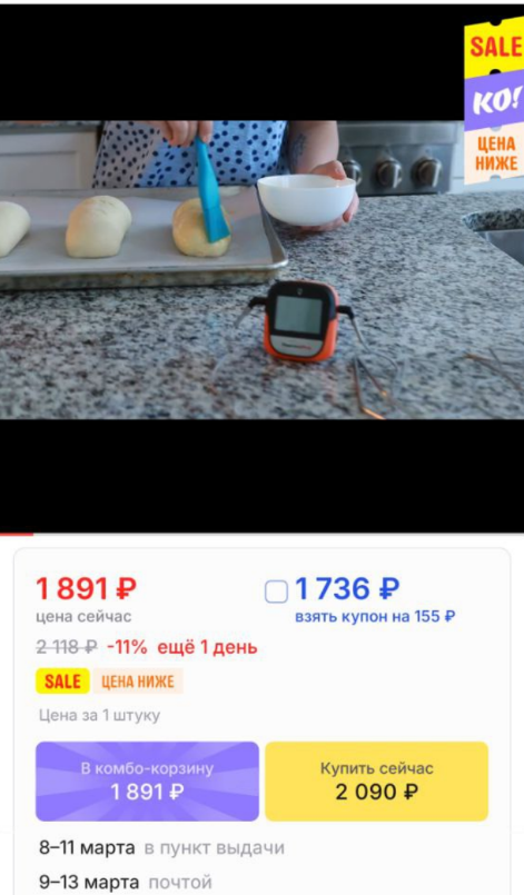 Вроде цена неплоха. Два щупа - можно следить за двумя кусками мяса сразу. Bluetooth до 150 метров, на смартфон приходят уведомления, когда готово. Точность до 1 гр.цельсия, мерит до 300 градусов. Работает от батареек ААА. Для гриля, духовки, барбекю - самое то.