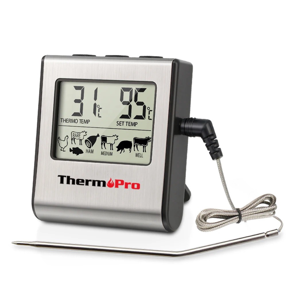 Компактный кулинарный термометр для измерения температуры мяса, рыбы и других блюд во время приготовления. Он поможет вам готовить стейки идеальной прожарки. Имеет ЖК-дисплей, таймер и звуковой сигнал.