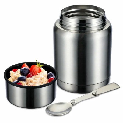 Термос вакуумный, колба из нержавейки - сохранит еду горячей 9 часов. Удобно: суп с утра налил, в обед горячий, или наоборот, смузи холодный прохлаждается.
