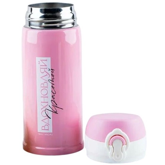 Корпус и колба из нержавейки, тепло держит до 8 часов. Горловина узкая - не проливается, крышка с замком. Можно в посудомойку кидать. Розовый, стильный.