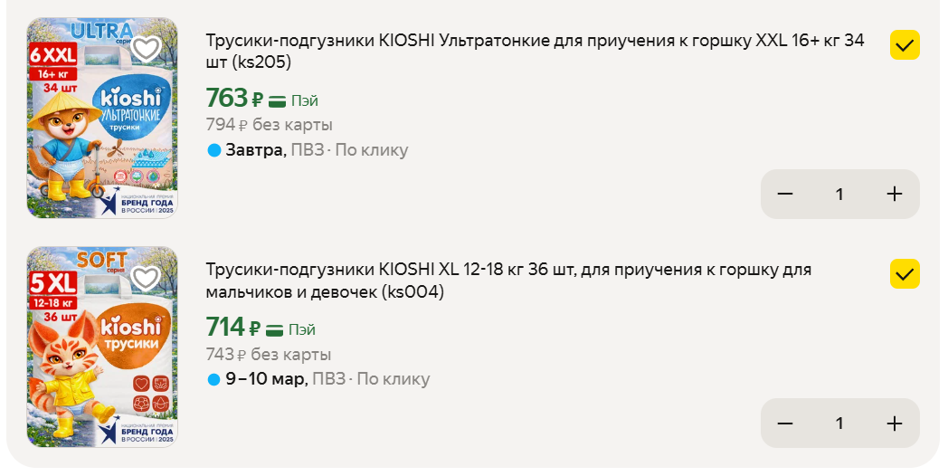 Подборка подгузников KIOSHI: