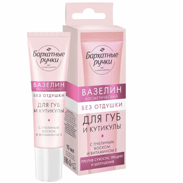 Бархатные ручки Вазелин для губ за 75₽. Универсальное средство с пчелиным воском и витамином Е для питания и защиты от холода. Выходит 15₽ с учётом баллов