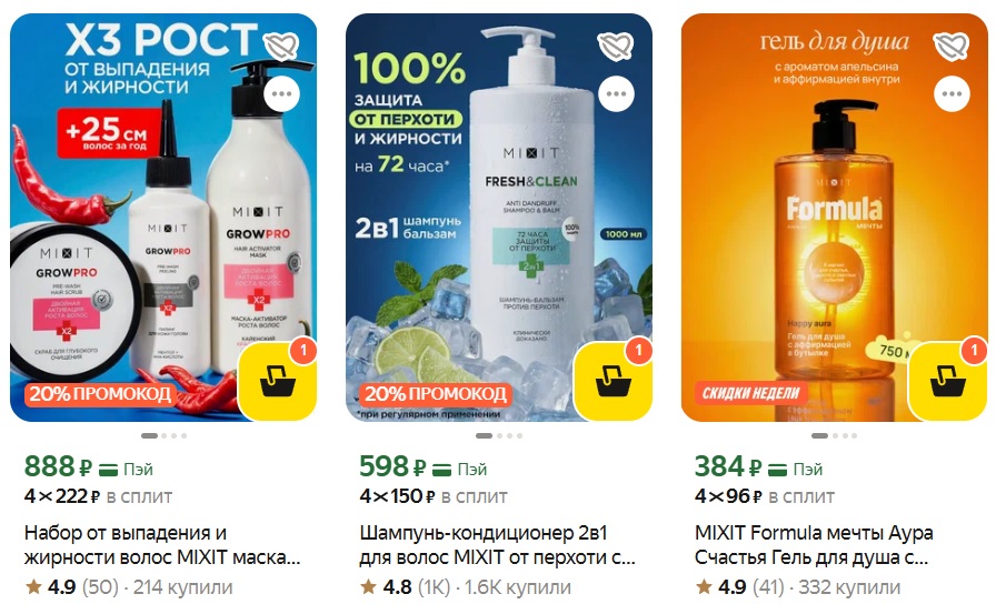 Качественная уходовая косметика для лица, волос и тела MIXIT с 20% скидкой. Продукция отличается современными формулами, приятными ароматами, отзывы ни них отличные.
