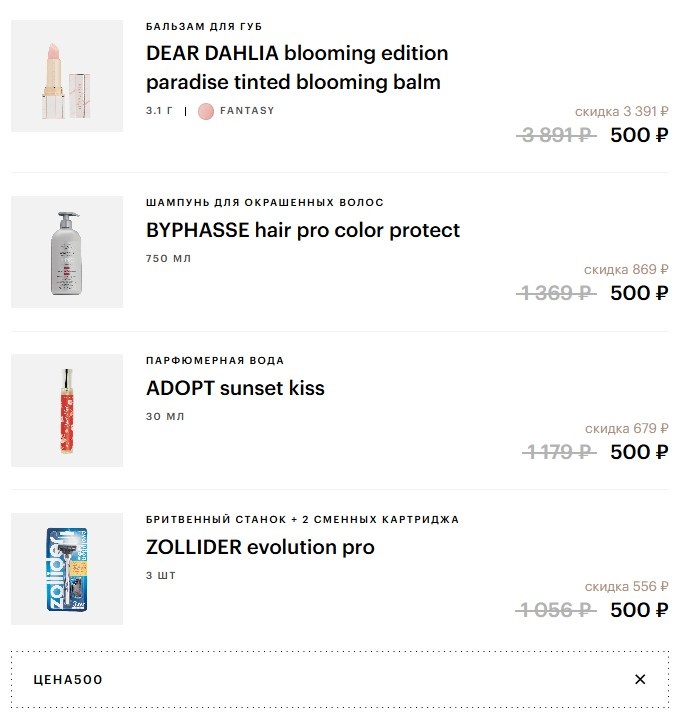 В Золотом Яблоке сейчас проходит акция - любой товар из каталога можно взять за 500₽ по коду ЦЕНА500. В каталоге разные вещи: уход, косметика, парфюм и немного бытовых мелочей.