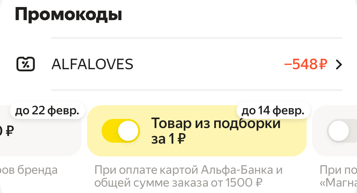 Акция действует только при оплате картой Альфа-Банка и если собрать корзину на 1500₽.