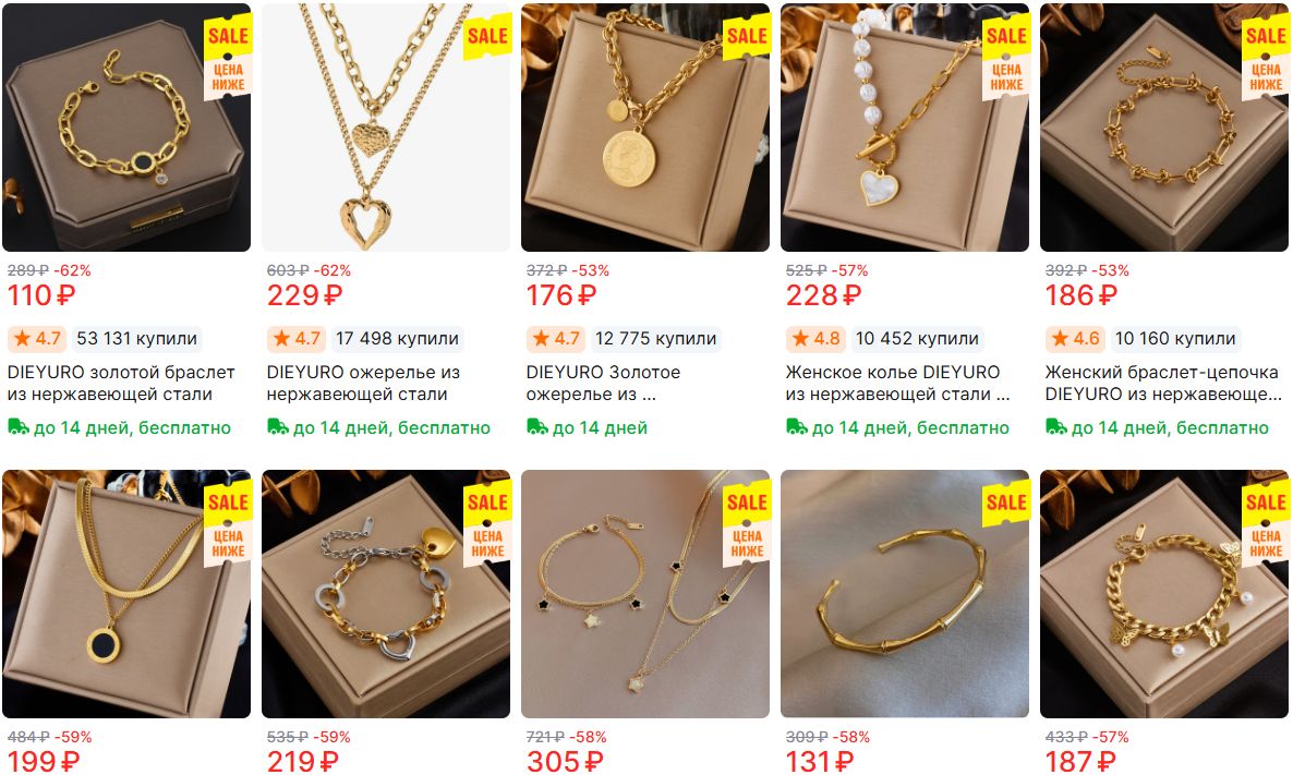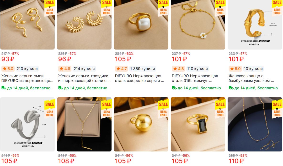 Проверенный бренд с качественными украшениями из нержавеющей стали. На каждое изделие - до 55000 заказов, что говорит о доверии покупателей. На Ozon и WB аналоги стоят значительно дороже.