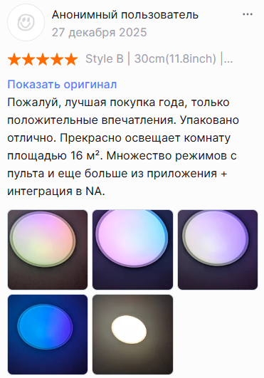 Нашел на алике недорогой потолочный светильник с RGB-подсветкой . Управляется с пульта или через приложение TUYA. Можно менять цвет по настроению и подключить к Умному дому.