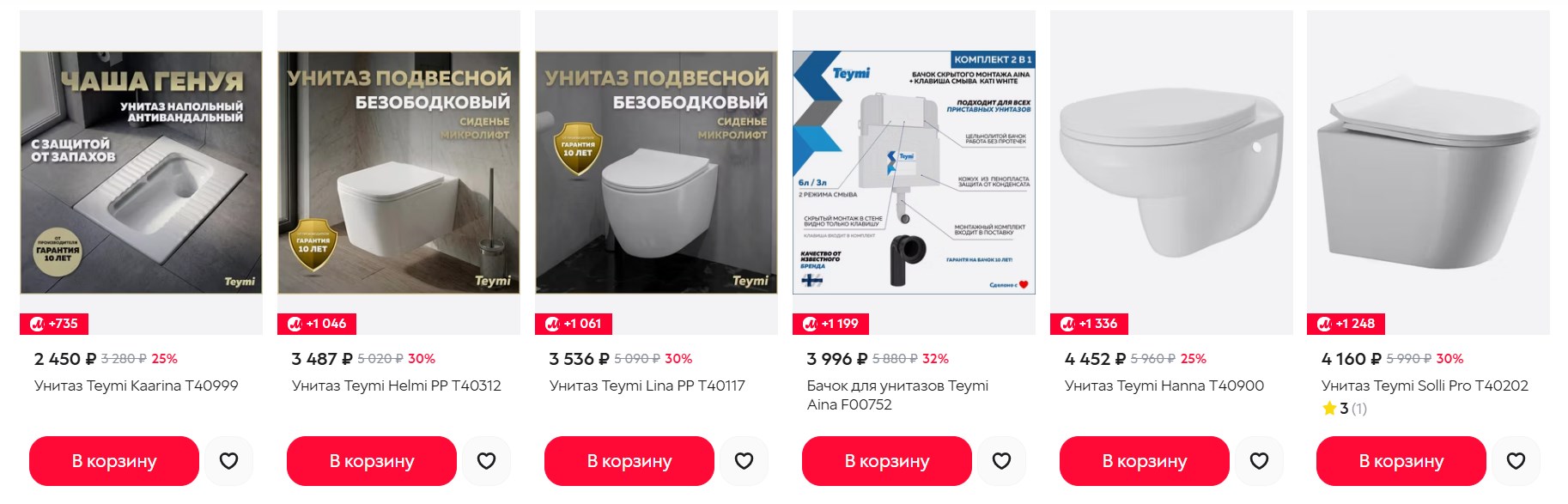 Мужики, кто в процессе ремонта санузла - унитаз Teymi Helmi PP T40312 за 3487₽ в М.Видео с учётом бонусов. Обычно от 4500 просят.