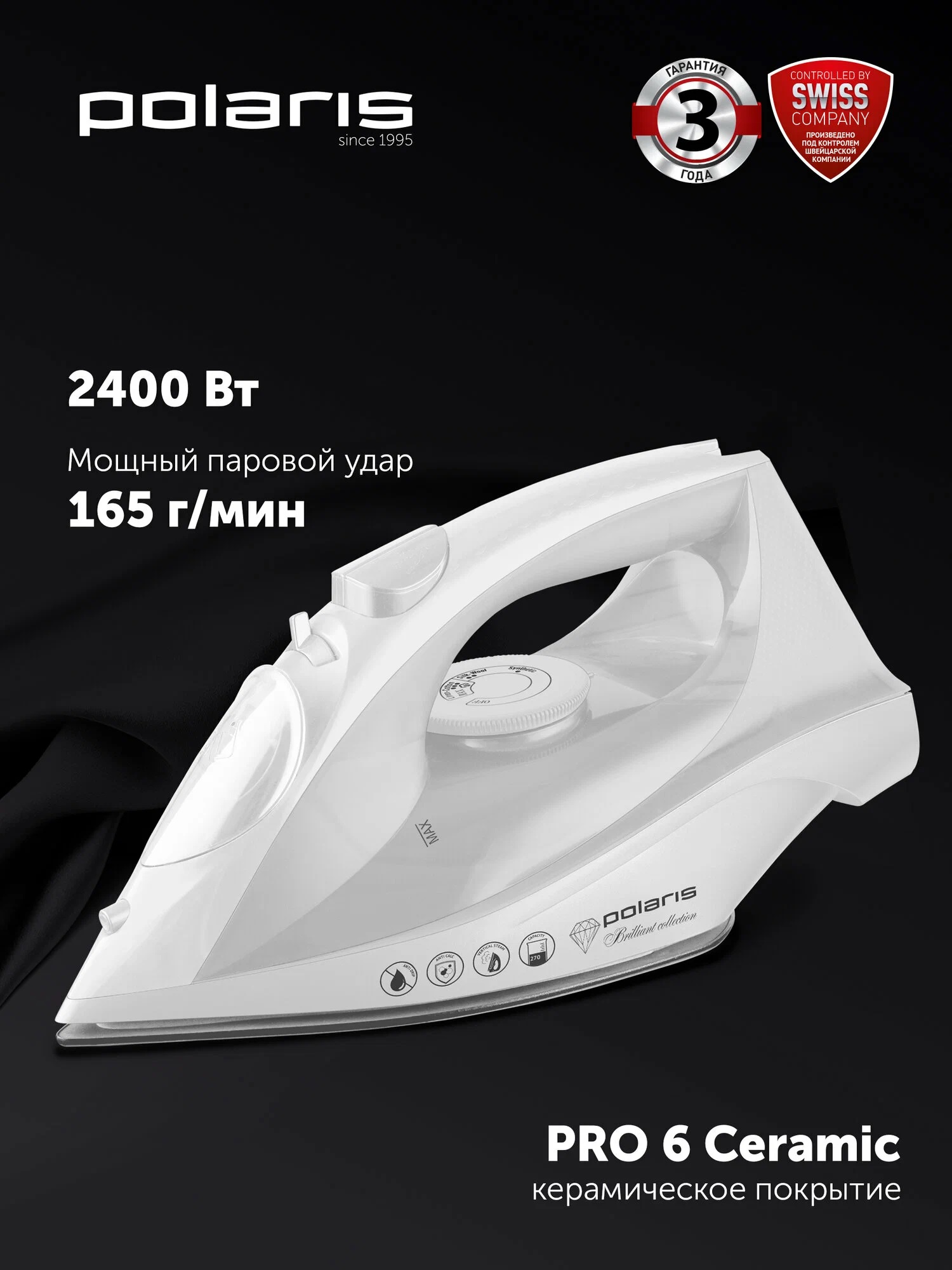 Отличная цена за этот утюг. Есть возможность вертикального отпаривания, высокая мощность 2400 Вт, быстрый нагрев, подача пара 50 г/мин, паровой удар 165 г/мин, можно отпарить одежду на вешалке, шторы. Подошва керамическая, гладкое, хорошо скользит. Резервуар для воды 270 мл, противокапельная система.