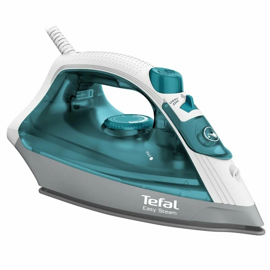 Вроде нтзкая цена. Мощность 1400 Вт греется быстро, пару минут и можно гладить. Пар идёт постоянно (25 г/мин), есть паровой удар 100 г/мин. Можно отпаривать вертикально: повесил рубашку на плечики и прошёлся, даже доску не доставал. Подошва с антипригаром, противокапельная система.