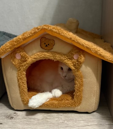 Я вечно мониторю всякие уютные штуки для животных. Вот сейчас попалась прикольная лежанка-домик на Маркете всего за 311 рублей.