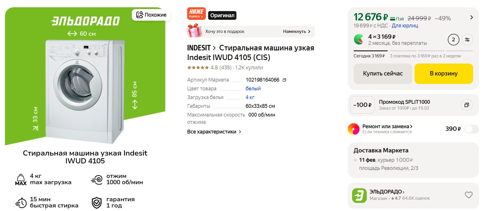 Когда в хрущёвке ремонт делала, искала маленькую стиралку. Indesit IWUD 4105 по параметрам подошла - её глубина всего 33 см, легко в нишу встала.