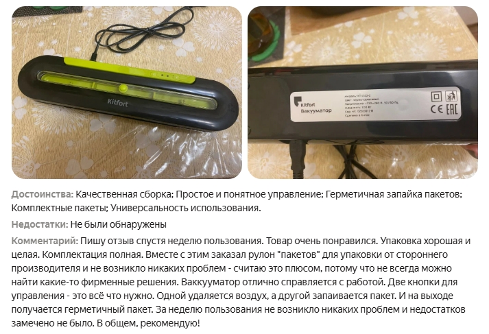 Отличный вариант для домашнего использования - упаковывает продукты в автоматическом режиме или просто запечатывает пакеты без откачки воздуха.