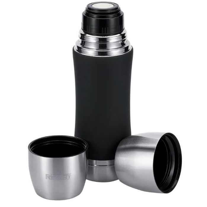 Объём 0,75 л, в комплекте сразу две кружки - удобно вдвоём чай пить или кофе. Корпус стальной с soft-touch пластиком, приятно в руке держать. Колба из нержавейки с вакуумной изоляцией: горячее держит до 6 часов, холодное до 12