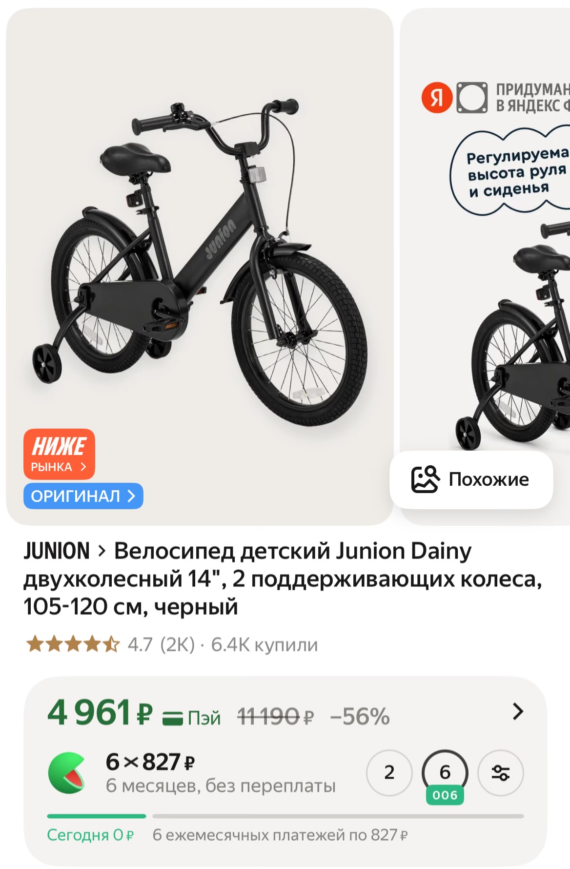 рассчитан на рост 105–120 см, подойдёт детям примерно 4–6 лет;