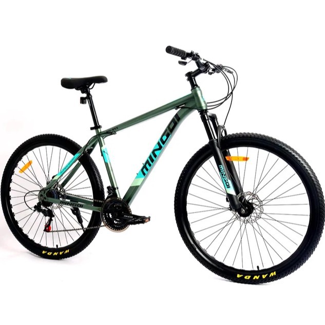 21 скорость (передний переключатель MINGDI, задний MINGDI, манетки комбинированные). Начальный уровень, но для прогулок хватит.