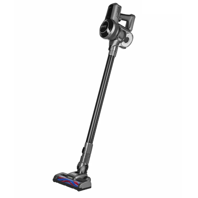 По характеристикам: два режима мощности (максимальная 140 Вт, 10 кПа), подсветка зоны уборки, HEPA-фильтр, аккумулятор держит 30 минут на обычной мощности, 15 на максимальной.