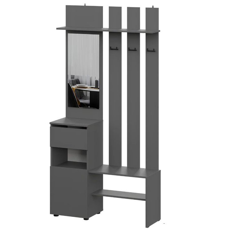 Неплохая вешалка за 3198₽. Размер 100х34.8х200 см. Круто, что в комплекте всё необходимое есть: обувница, полки, ящики. И удобно, что сборка под левую или правую сторону.