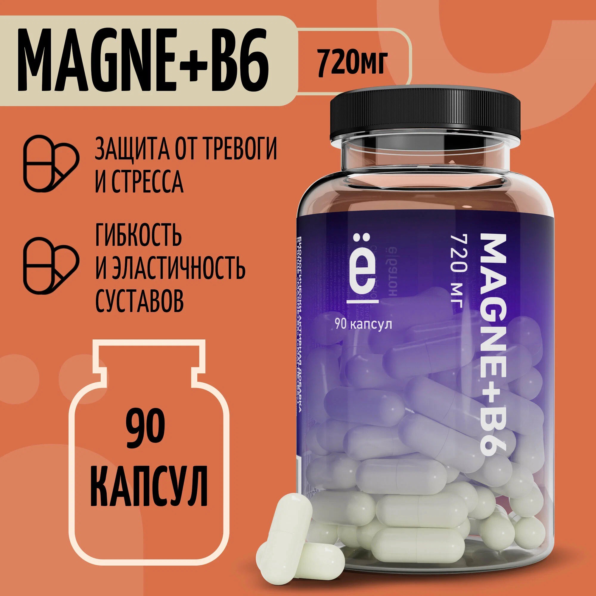 Магний + В6 / MAGNE+B6 для нервной системы 90 капсул за 295₽
