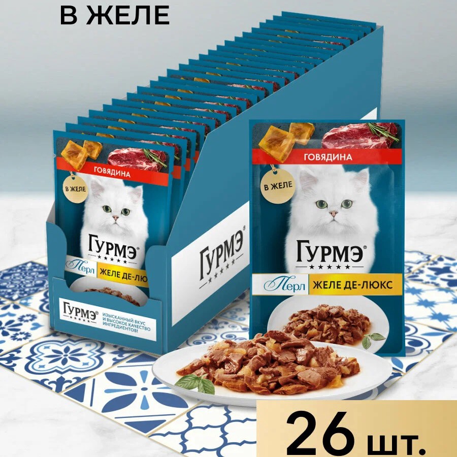 Набор Влажный корм для кошек ГУРМЭ® Желе Де-Люкс с говядиной в желе 75 г x 26 шт