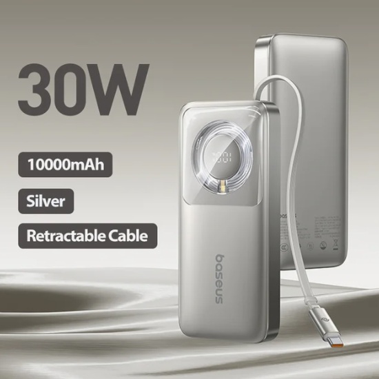 В официальном магазине бренда Baseus на Алиэкспресс действует выгодный купон на хорошие повербанки с встроенным зарядным кабелем и дисплеем. В карточке товара есть 4 модели на выбор в 2 цветах.