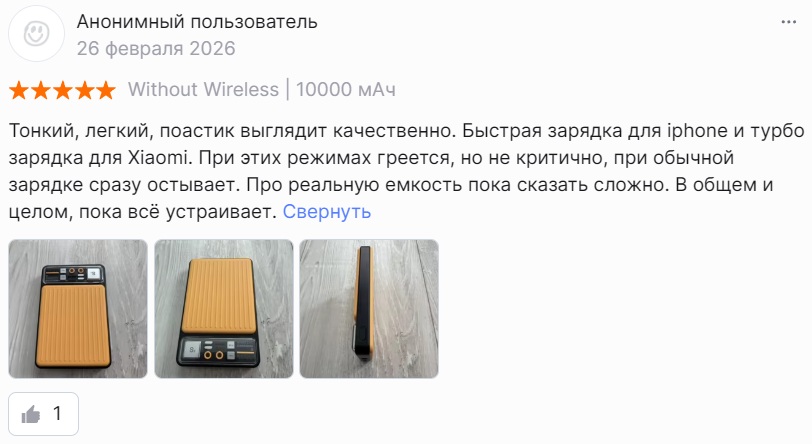 Банка от QOOVI ёмкостью 10000 мАч всего за 719 рублей на Алишке, хотя в других местах он от 1050 рублей. Мощность 22.5 Вт, поддерживает быструю зарядку QC 3.0. Порты Type-C и USB, есть индикация заряда. Компактный, можно брать в дорогу или на работу. За такие деньги - хороший рабочий вариант.