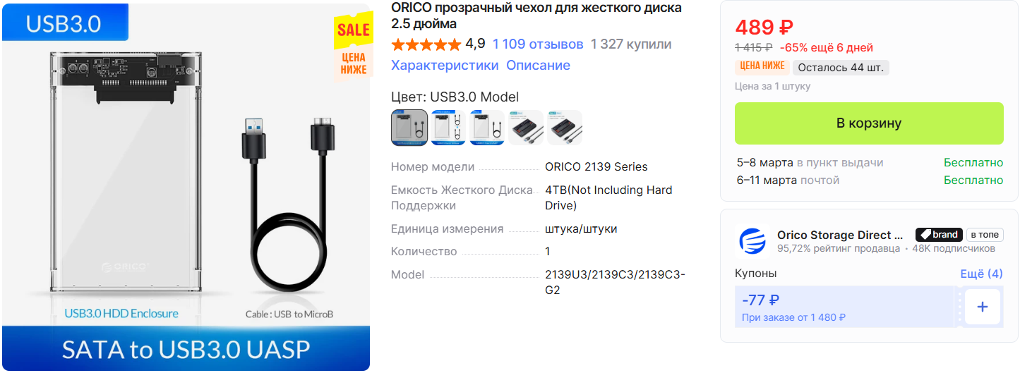 Отличный способ не выбрасывать старый диск, а сделать из него полезную вещь. В магазине есть и более скоростные версии с Type-C (до 10 Гбит/с), если нужно.