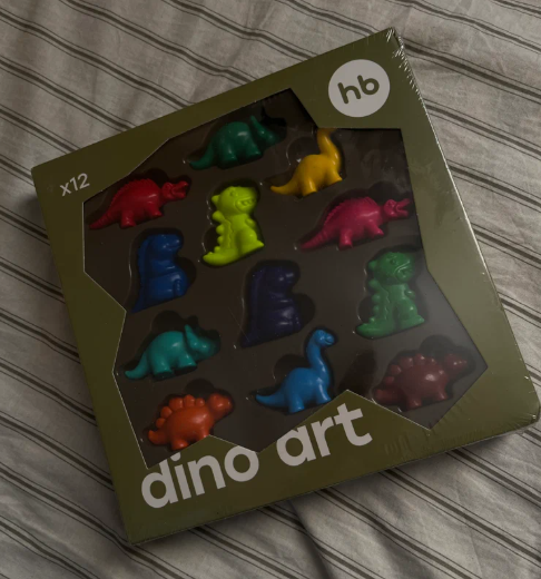 В наборе 12 ярких мелков в виде милых динозавриков, которых удобно держать в руке. Хорошо ложатся на бумагу и картон, не крошатся. Если ребенок вдруг испачкается, легко отмоются водой.