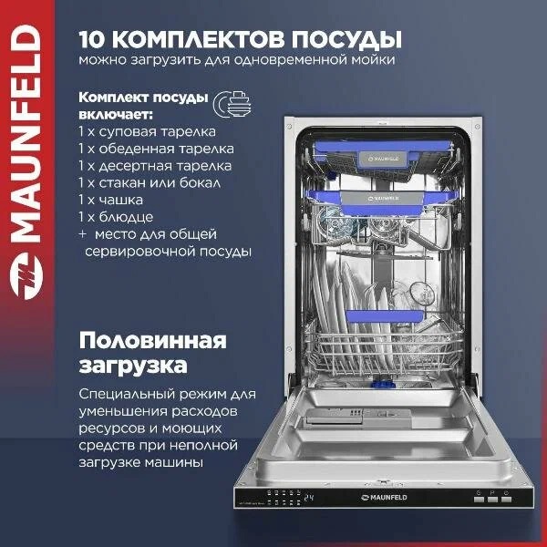 Компактная техника для небольшой кухни от популярного производителя. При ширине 44,8 см имеет три уровня загрузки, помещается до 10 комплектов посуды. У меня тоже узкая, но мне прям не хватает 3 уровня для столовых приборов, мастхев считаю.