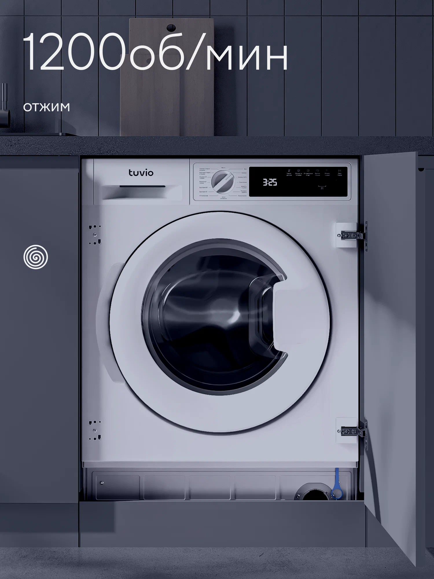 Цена огнище! Она без выступающих элементов, с креплениями для дверцы шкафа. Вместительность: до 7 кг стирки и до 5 кг сушки за один цикл. Большой люк 33 см позволяет загружать объёмные вещи: от свитеров до пуховых одеял.