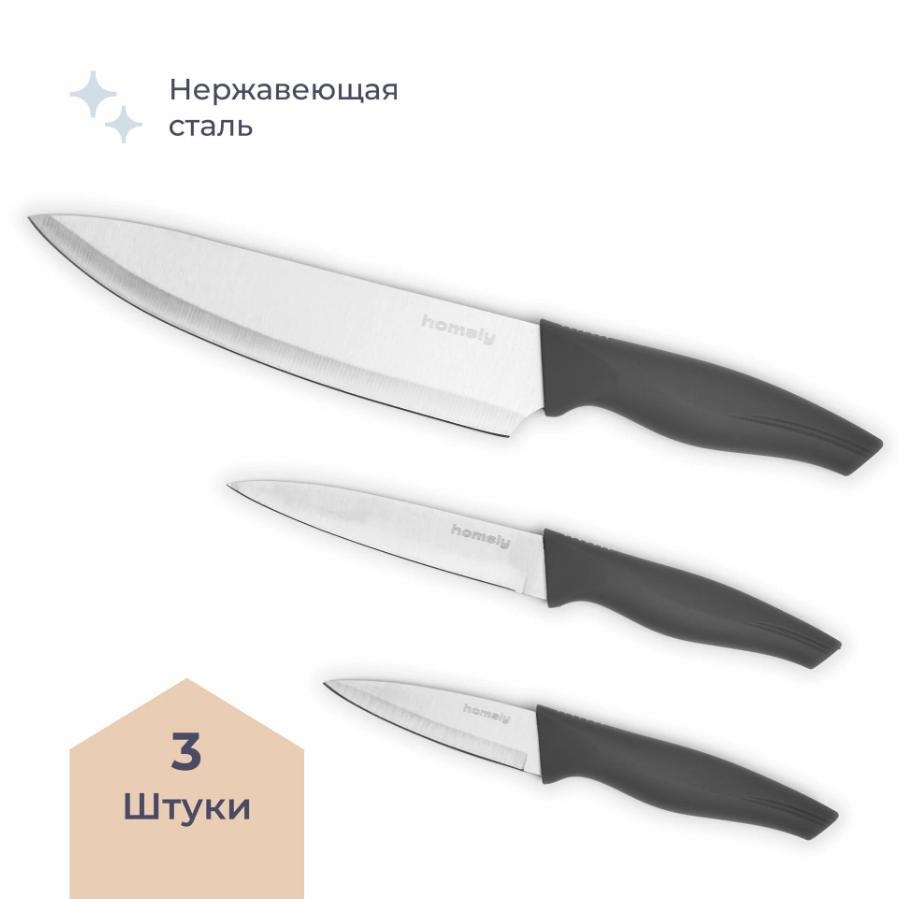 Набор кухонных ножей Homsly, 3 шт, серый - 269 ₽. Базовый набор для ежедневной нарезки.