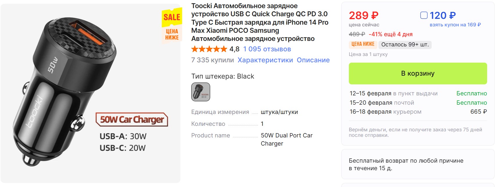 Братья-водители, срочная находка! На Алике зарядка Toocki за 120₽ (по купону продавца).