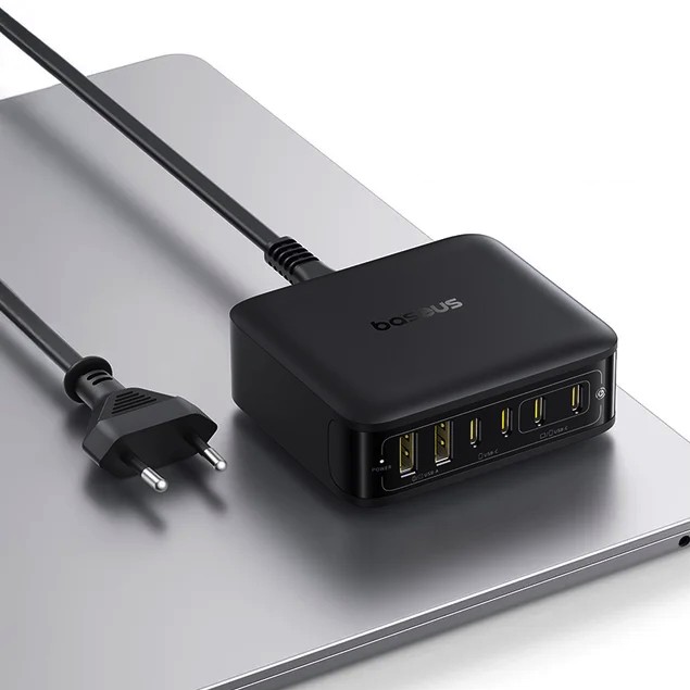 У нее целых 6 выходов: 2 USB и 4 Type-C. То есть можно одновременно заряжать 6 устройств!Поддерживает все эти быстрые зарядки (QC, PD, PPS), так что телефон, планшет и даже ноутбук будут заряжаться очень быстро.