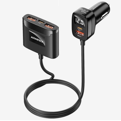 Присмотрел себе автомобильное зарядное устройство ASOMETECH на 78 ватт, на Алиэкспресс он сейчас 911 рублей, если через комбо-корзину оформлять. Втыкается в прикуриватель, проводов хватает - 1.5 метра, хоть на заднее сиденье тяни. Портов аж пять: три USB и два Type-C, можно всю компанию заряжать одновременно. Ещё там дисплей маленький есть, показывает напряжение. Отзывы отличные, так что можно смело брать. Минималка через комбо-корзину тысяча рублей, но доставка ускоренная, долго ждать не придётся.