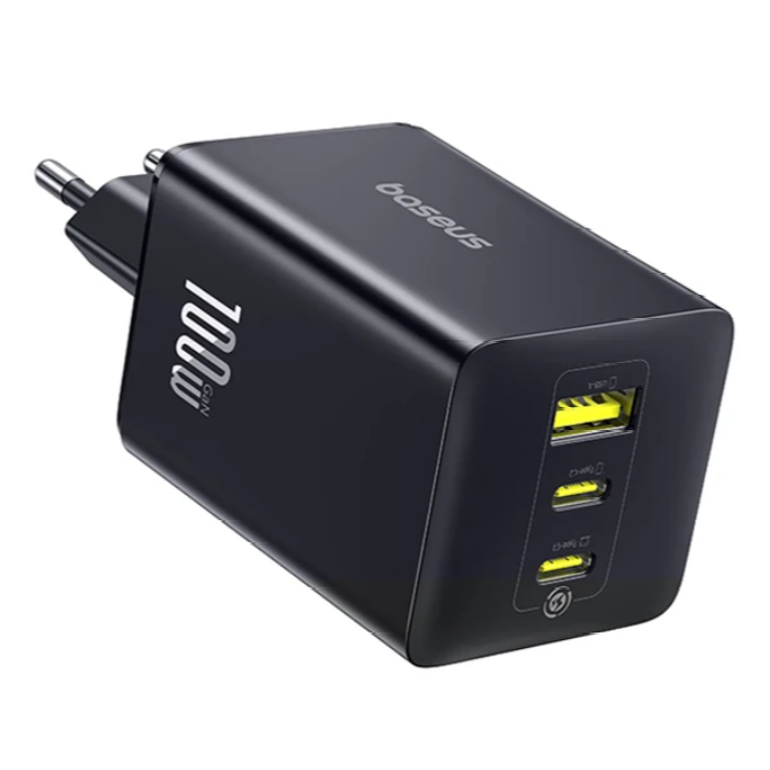 Компактное GaN‑решение для одновременной быстрой зарядки трех устройств с поддержкой протоколов PD, QC, PPS. Оснащено двумя портами USB‑C и одним USB‑A. Удобный вариант для путешествий - интеллектуальный контроль температуры, вес 184 г и компактный корпус. Из плюсов ещё и безопасность, есть защита от перегрева, короткого замыкания и скачков напряжения.