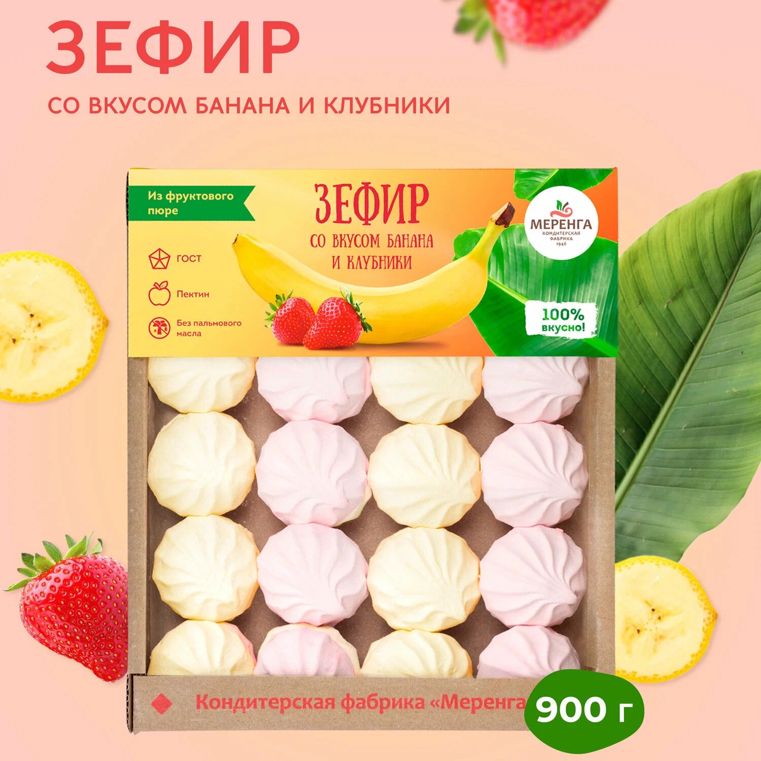 Вкусы есть разные, например, со вкусом банана и клубники 0.9 кг или шоколадного фондю, 0.83 кг по 379р. А ещё есть покрытые шоколадом со вкусом апельсина 1 кг 504р и с манго,1 кг за 522р.