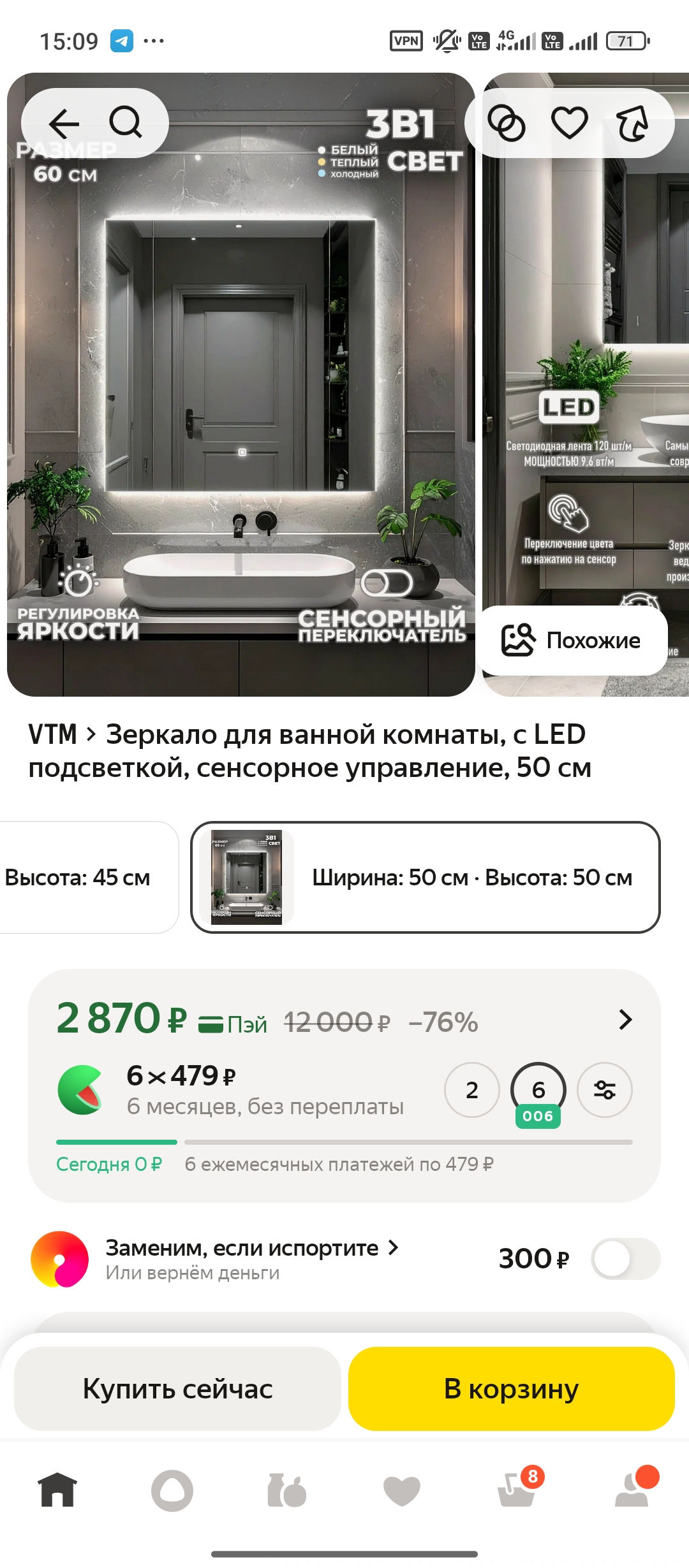 Неплохой вариант за такие деньги! с LED подсветкой, сенсорным управлением и регулировкой яркости и цвета. Очень стильно выглядит, без рамки, стекло AGC 4 мм.