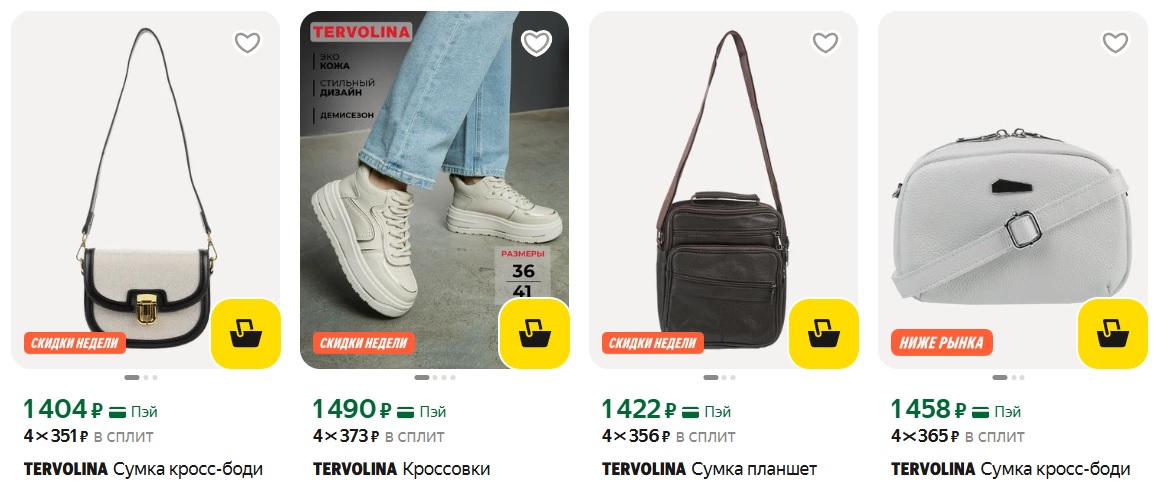 В каталоге есть универсальные кроссовки, удобные сандалии, практичные сумки и другое, размерный ряд большой. Товары качественные, отличный вариант на повседневку.
