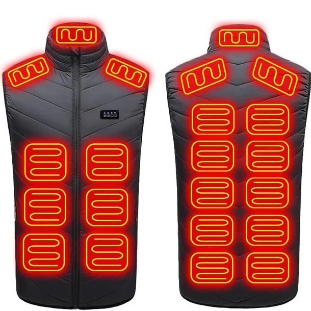 Прикольная штука - жилет, который греется от повербанка. Кинул powerbank в карман, воткнул провод и через минуту уже тепло. Три режима: 36°C (просто чуть тепло), 45°C (комфортно), 56°C (для холода). Светодиоды показывают, какой режим включён. Сам жилет из мягкой водоотталкивающей ткани. Ценник вроде норм, глянул везде.